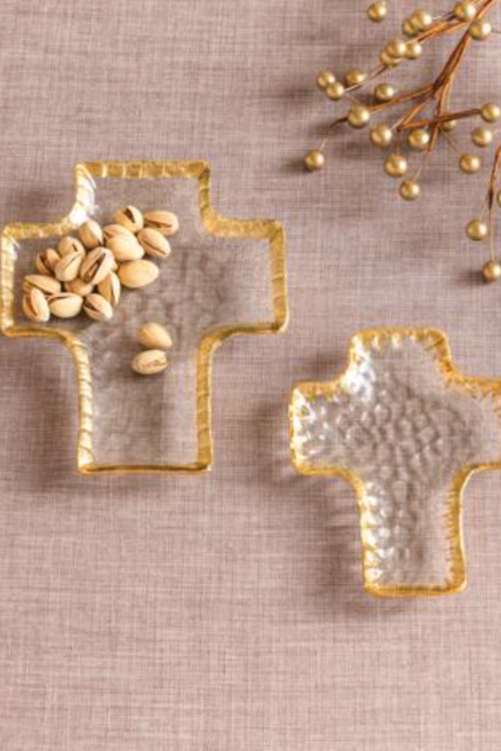 Elevate your hosting experience with this exquisite set of Gold Glass Cross Nested Tidbit Trays. Featuring a sophisticated design, these trays are perfect for serving appetizers, desserts, or small bites at any gathering. The set includes two trays, each crafted from high-quality glass and adorned with elegant gold foil edges that add a touch of luxury to your table setting. The smaller tray measures 4 1/4" x 5 1/2", while the larger tray is 5 1/2" x 7", making them versatile for various serving needs. Their nested design allows for easy storage, saving space in your kitchen. Ideal for special occasions or everyday use, these trays are a stylish addition to any home decor. Whether you're hosting a dinner party or enjoying a quiet evening at home, these tidbit trays will impress your guests and enhance your dining experience.