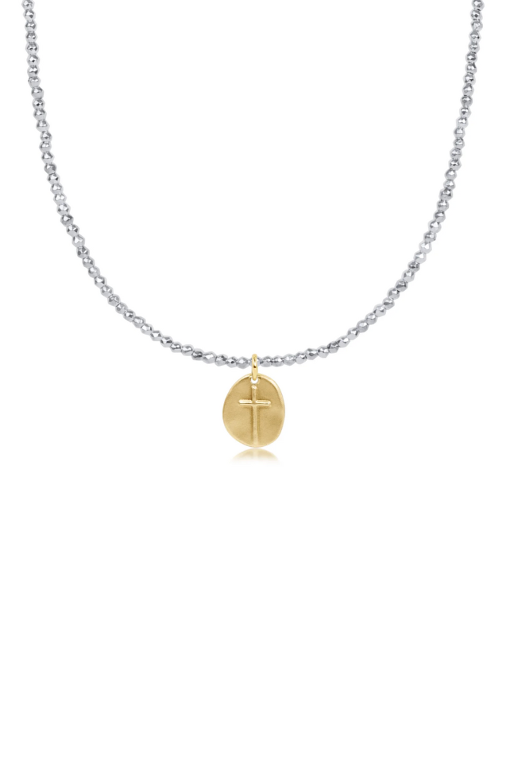 enewton: Choker Bright Silver Faceted Hematite 2mm-Inspire Small Gold Charm