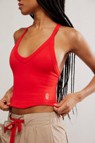 So essential, this cami is an easy layer featuring a soft and light fabrication that offers barely-there coverage, with a flattering V-neckline and racerback for effortless cool.