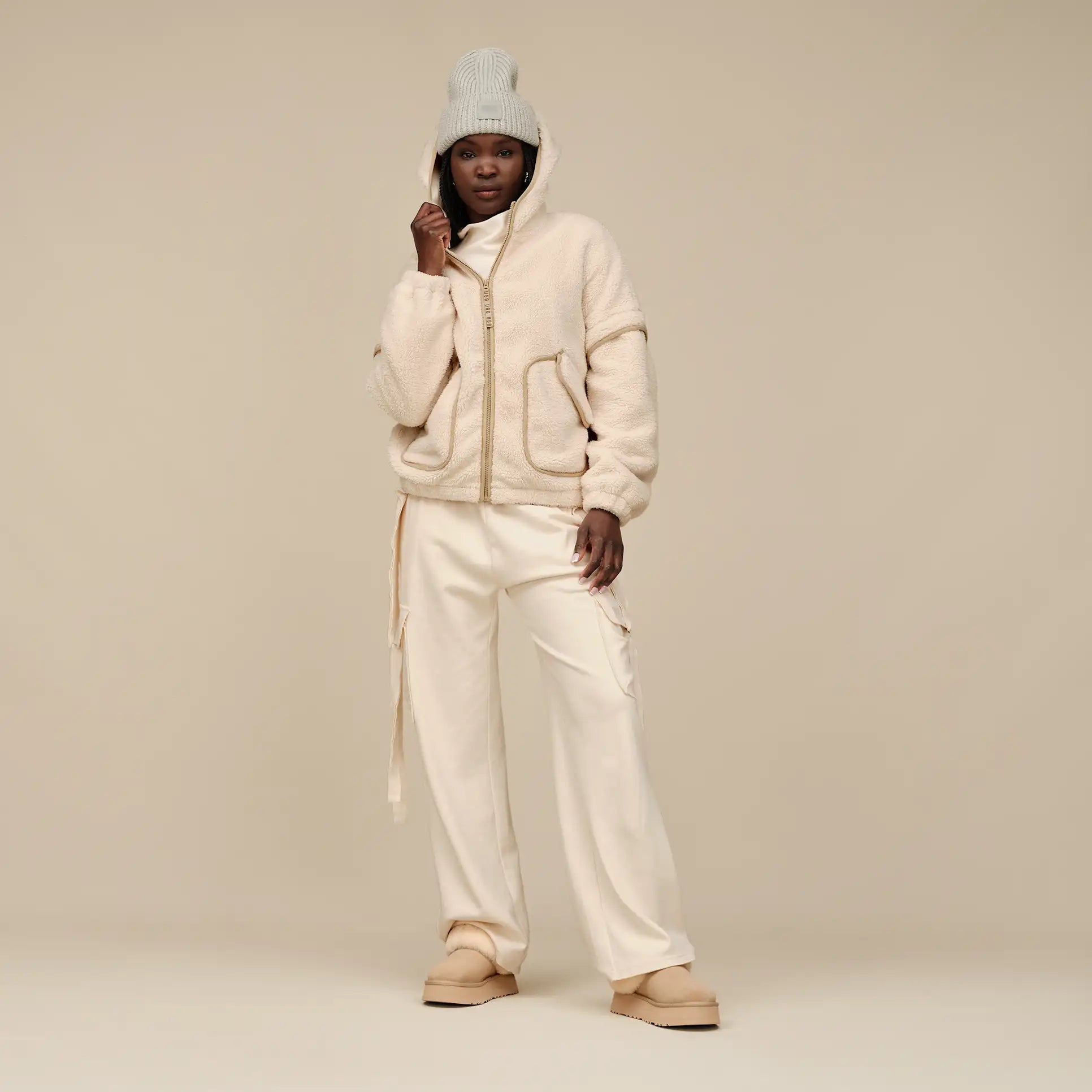 - Vislon zipper with The Graphic UGG® Font embossed faux suede zipper pull